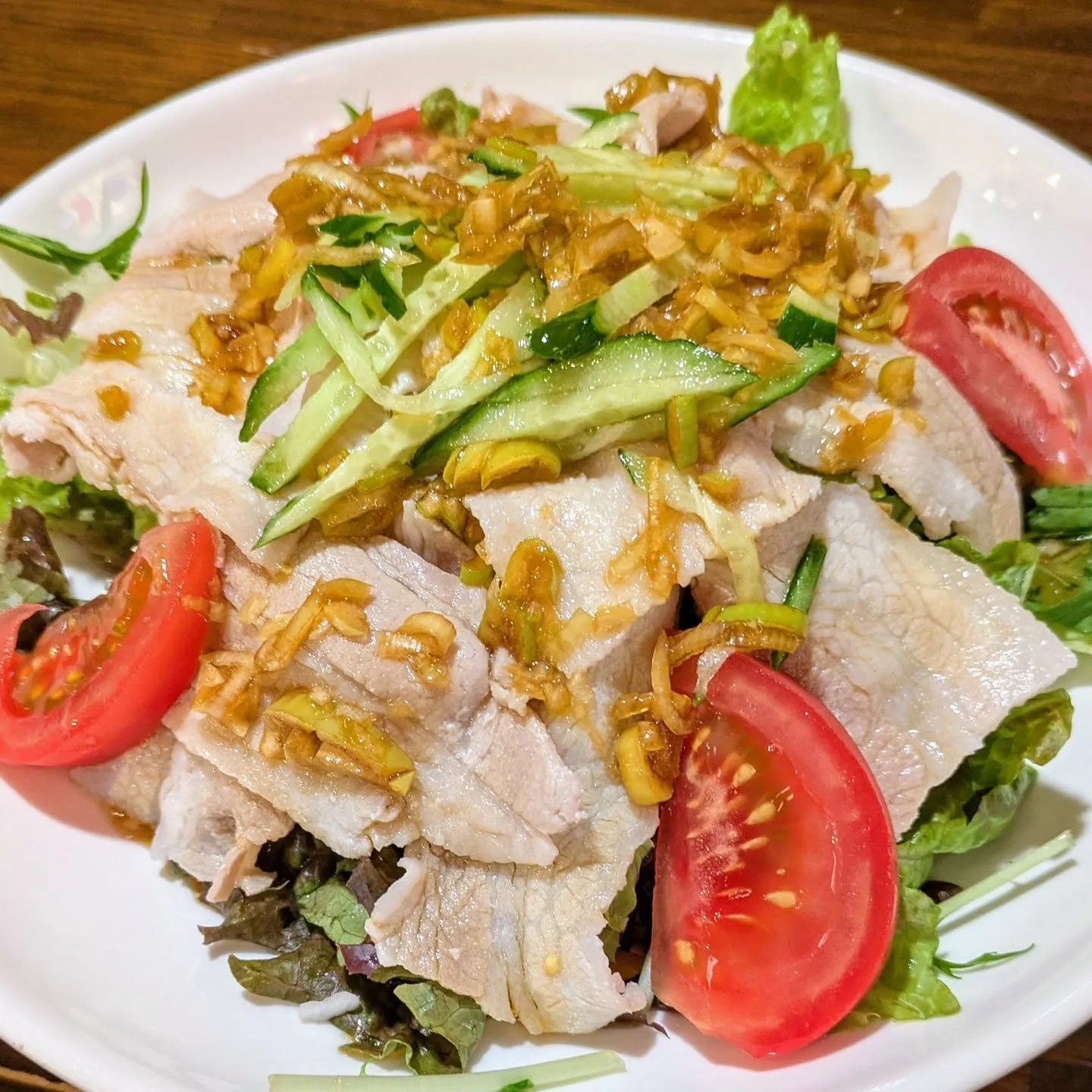 本日よりランチメニューで豚バラ冷しゃぶ定食のご紹介です。あっさりとした和風ベースのタレにレタス、トマト、胡瓜の千切りを添えました。これからの季節にピッタリの商品です。ご賞味下さいませ。